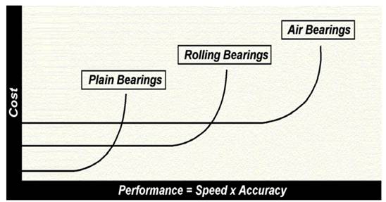 空气轴承在轴承原理和设计上代表了下一个逻辑高度。空气轴承具有可靠的应用实绩,在坐标测量设备上已经使用了20多年。空气轴承的很多技术优势,例如几乎零摩擦和零磨损、高速和高精度能力、无油润滑的需求等对今天的机械设计者来讲是非常巨大的优势。然而,这些优势并未被完全利用,因为空气轴承非常难生产,直到最近才能在商业上得以实现。