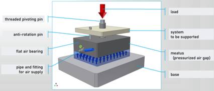 与接触式的滚动轴承不同,空气轴承利用一层压缩空气薄膜,在两个本应互相接触的对偶面间形成一层零摩擦的承载层。由于无接触,空气轴承避免了传统轴承相关的摩擦、磨损、润滑等难题,并在高精度定位和高速应用方面获得了巨大的优势。